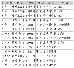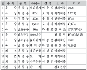 역시 대회신으로 우승하였고, 초등부의 높이뛰기에서 이종문(김제죽산)이 1m72Cm를 뛰어넘어 금을 보탰다.