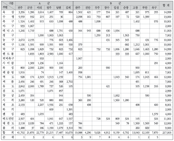 참가 시·군은 전주·군산·이리·정주·남원·김제 등 6개시는 A군, 완주·진안·무주·장수·임실·순창·고창·부안·옥구