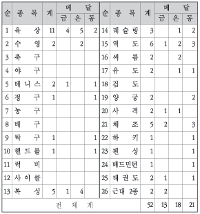 종목별 메달획득 현황