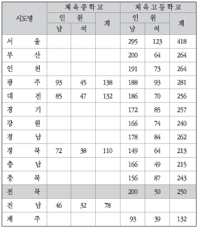 시도별 체육중·고등학교 현황